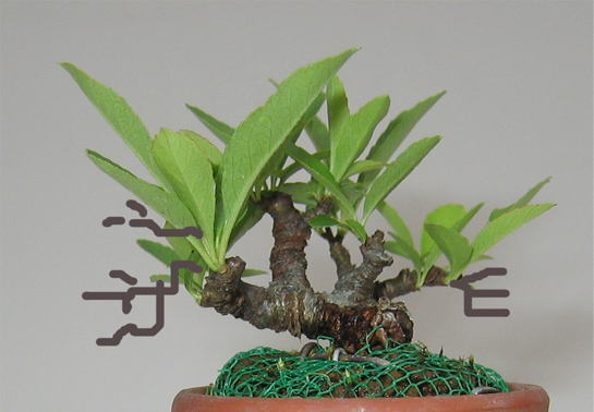 ピラカンサは樹勢が強壮で萌芽力も強いのでミニ向きの樹種
